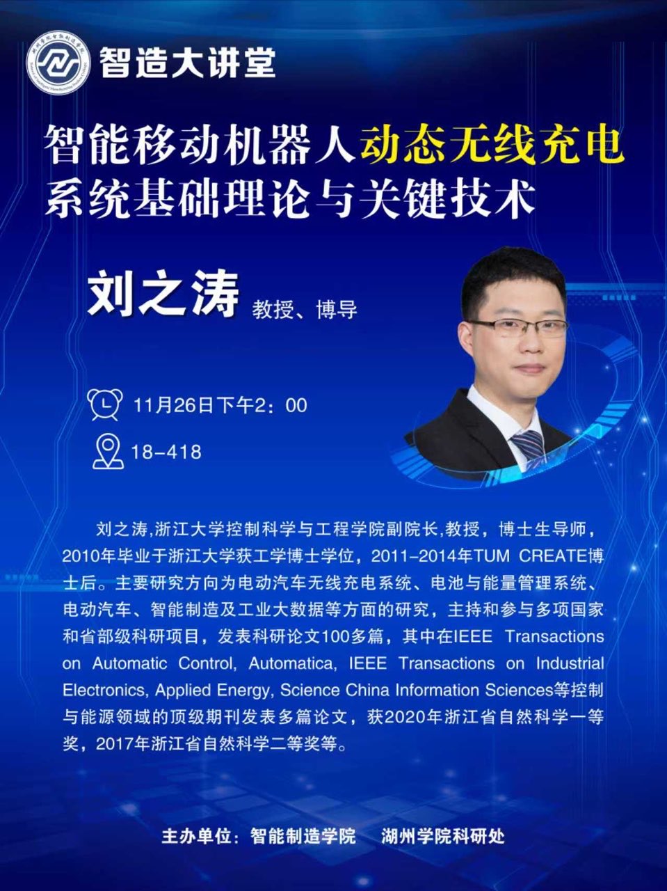 智造大讲堂——智能移动机器人动态无线充电系统基础理论与关键技术