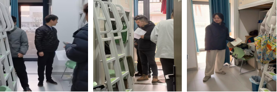 1月23日下午,学院党委副书记张旭带领全体辅导员及学生干部深入寝室开展安全专项检查与离校教育。检查过程中,仔细查看了宿舍的用电安全、消防器材完好度、卫生状况及门窗锁闭情况,并现场叮嘱同学们离校前务必切断电源、关好门窗、妥善保管贵重物品。