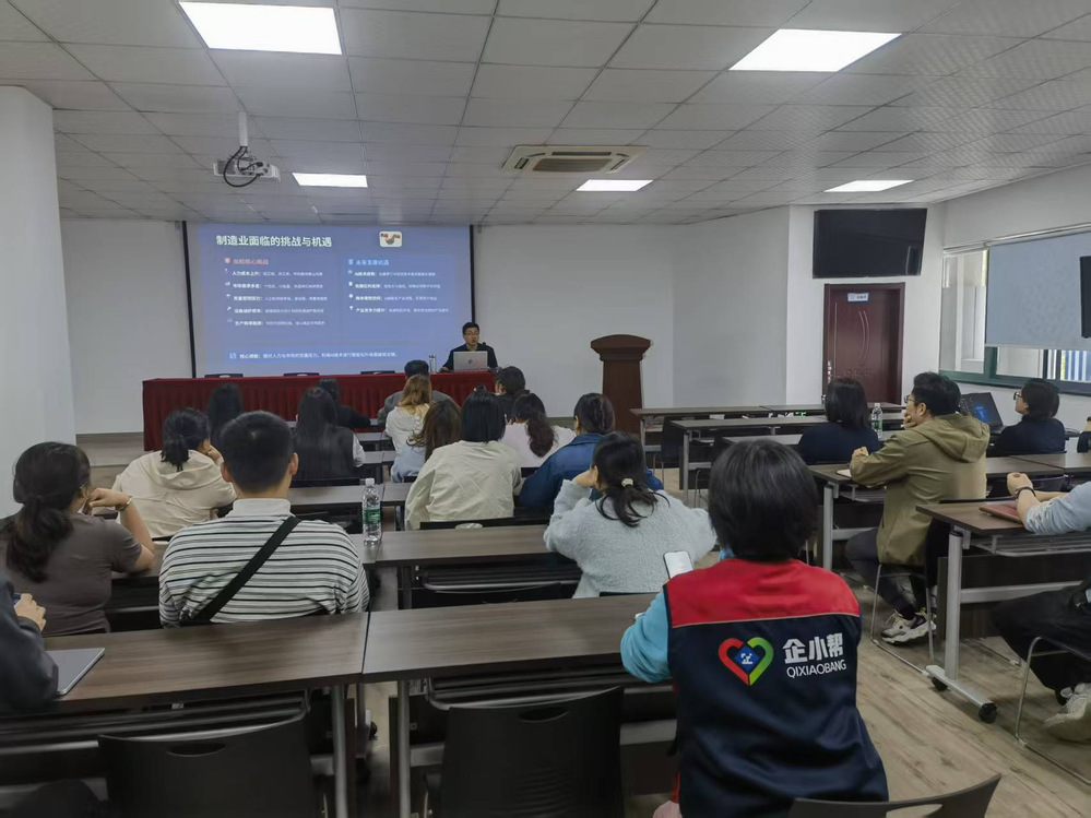 为深入推进产教融合、精准服务地方制造业,4月15日下午,应吴兴科技创业园、万马智能制造产业园邀请,我校智能制造学院刘海军教授在吴兴区企业服务综合平台二楼报告厅,为园区制造业企业开展AI应用专题培训。园区企业负责人、生产管理骨干、技术负责人及办公人员等参加培训。